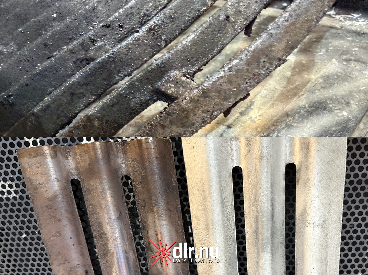I galleriet her i indlægget – og i videoerne nedenfor – kan du se eksempler på, hvordan laseren håndterer selv de mest genstridige fedt- og sodbelægninger.