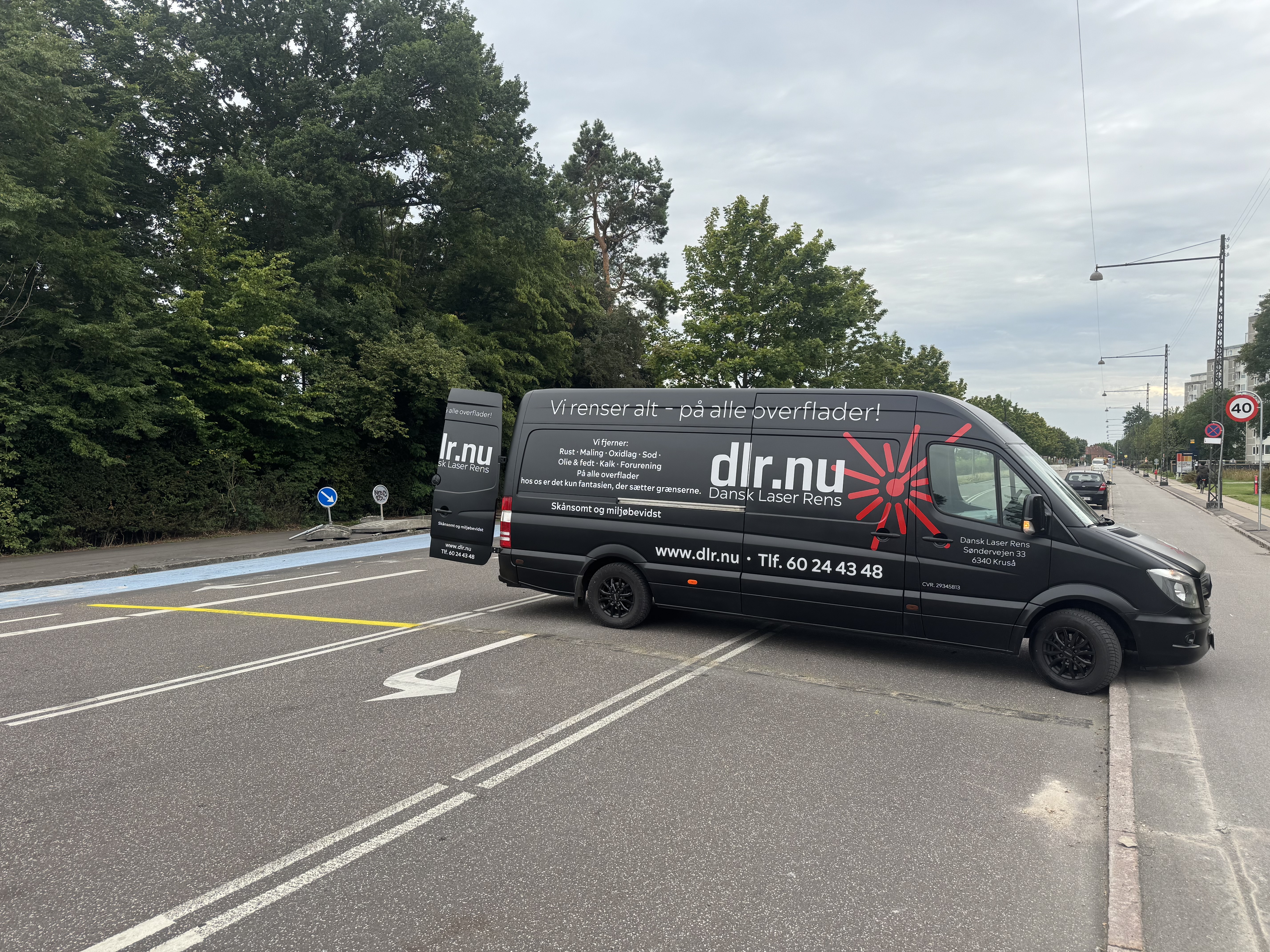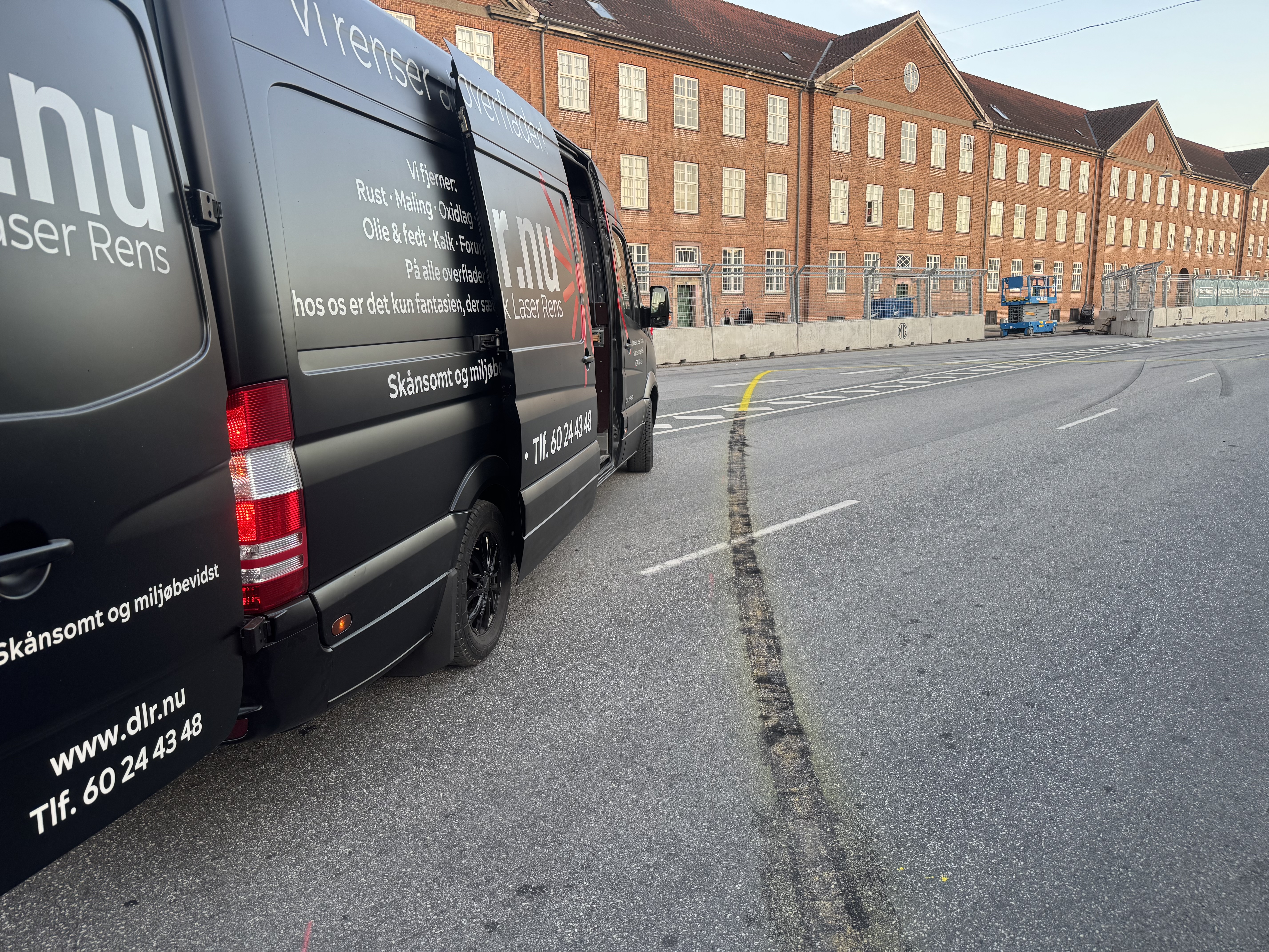 Opgaven bestod i at fjerne de kraftige striber uden at beskadige asfalten nedenunder. Med traditionelle metoder kan det være svært at opnå et flot resultat uden slid eller misfarvning, men med vores pulslaser-teknologi kunne vi arbejde målrettet og præcist.