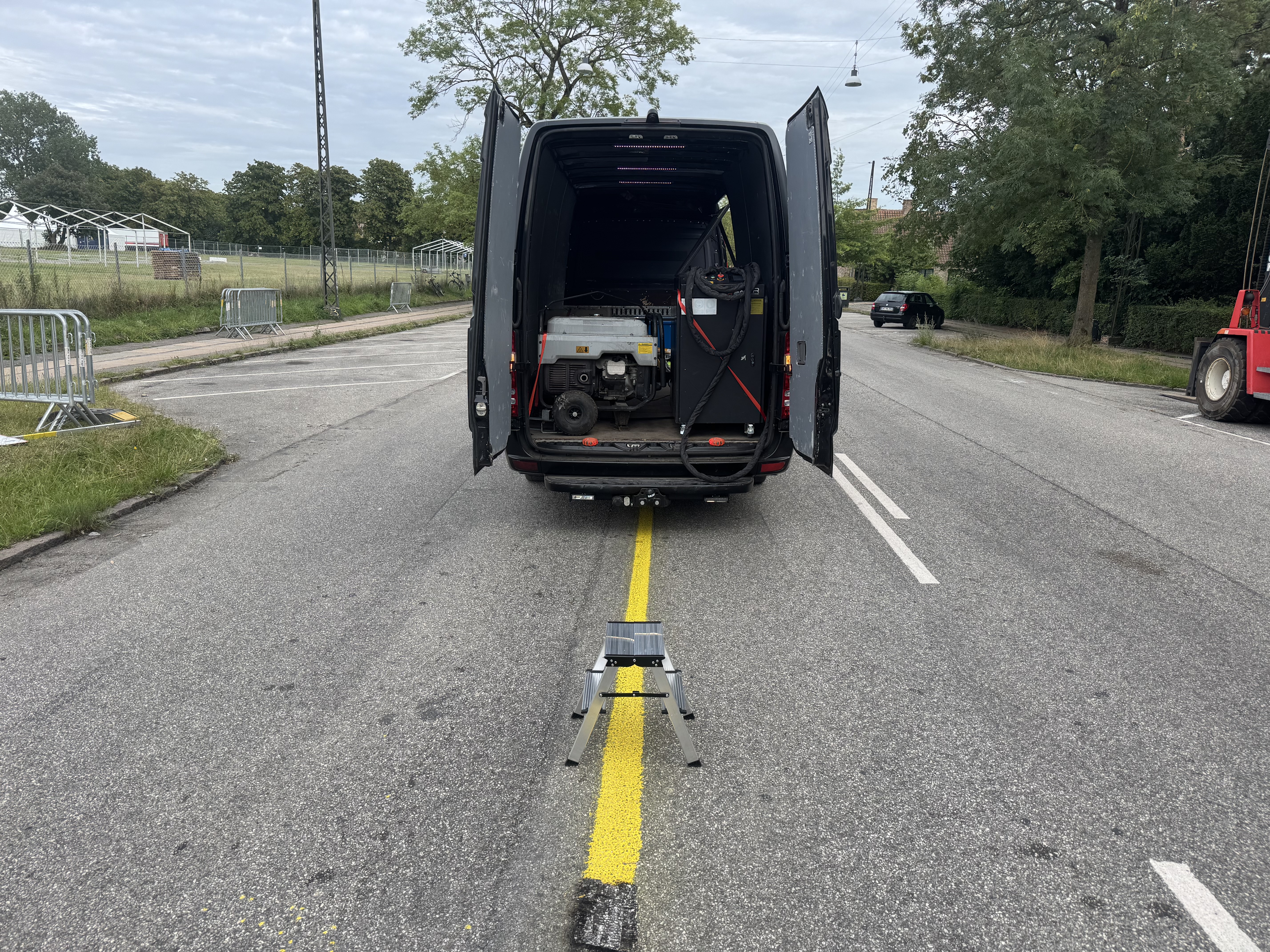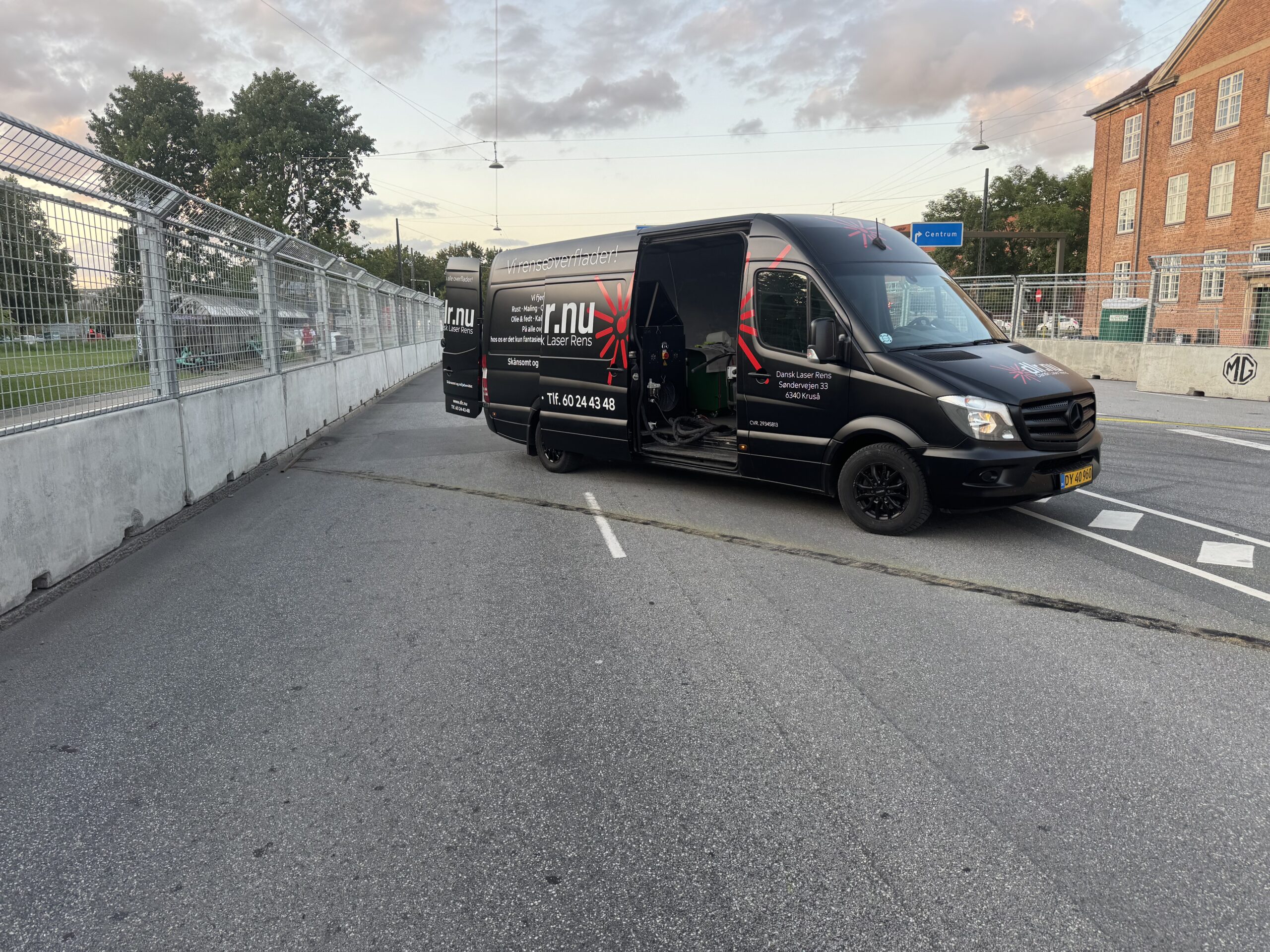 Efter et par intense dage på Bellahøj Park, hvor vi havde vist vores teknologi frem, fik vi en ekstra opgave: at hjælpe med oprydningen efter løbet. De midlertidige gule vejbanestriber, som var blevet påført til arrangementet, skulle fjernes hurtigt og skånsomt – og her kom vores laser for alvor på arbejde.