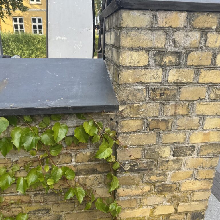 Efter afrensningen udfører vi en diffusionsåben imprægnering, der hjælper murværket med at holde sig tørt, beskytter mod fremtidig belægning og samtidig tillader fugten i muren at slippe ud.