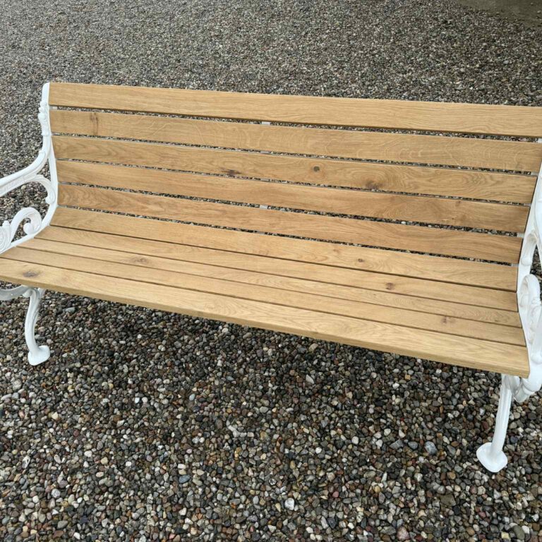 Resultatet? En smuk, klassisk havebænk, som igen kan pryde haven – og som nu står stærkere, mere modstandsdygtig og klar til mange nye år med minder.