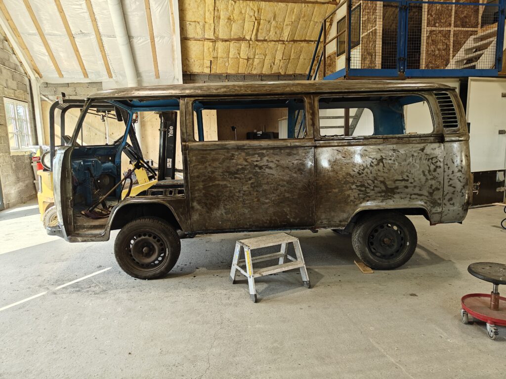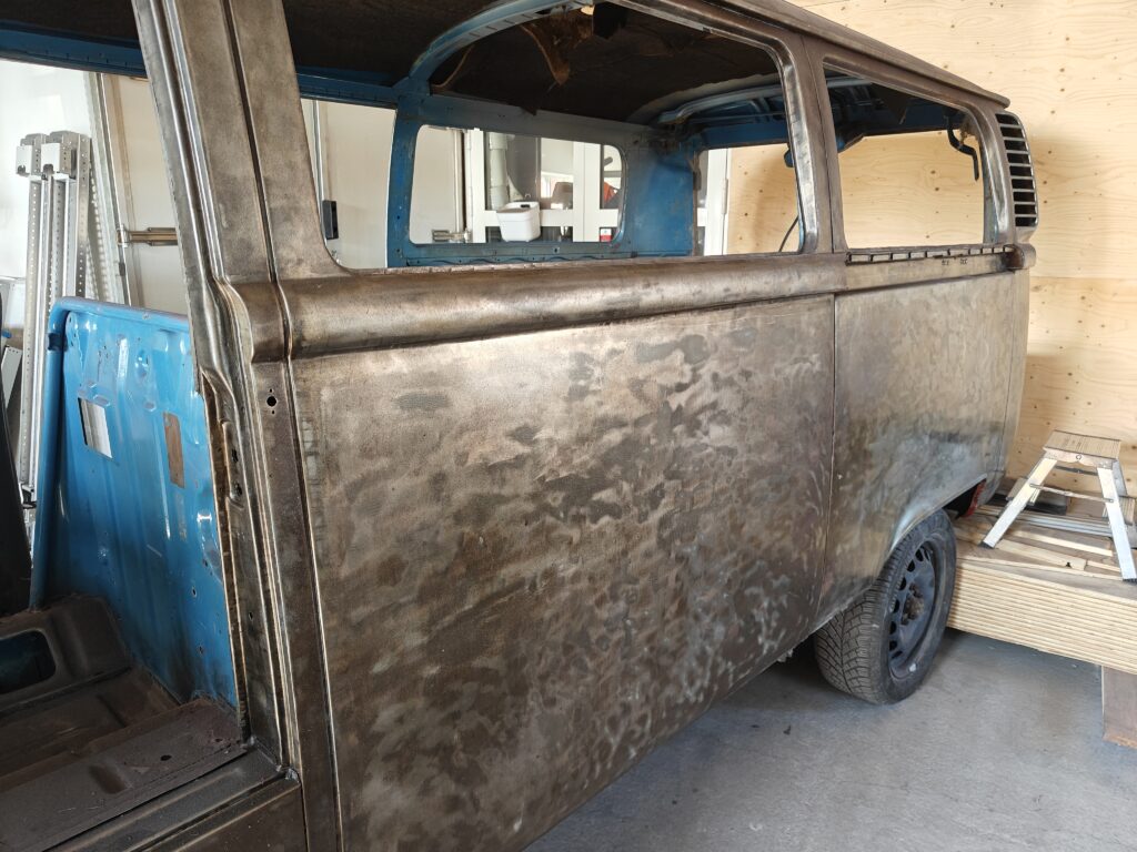 Resultatet er et rent og ensartet udgangspunkt for det videre restaureringsarbejde – klar til næste fase i genopbygningen af denne ikoniske folkevogn.