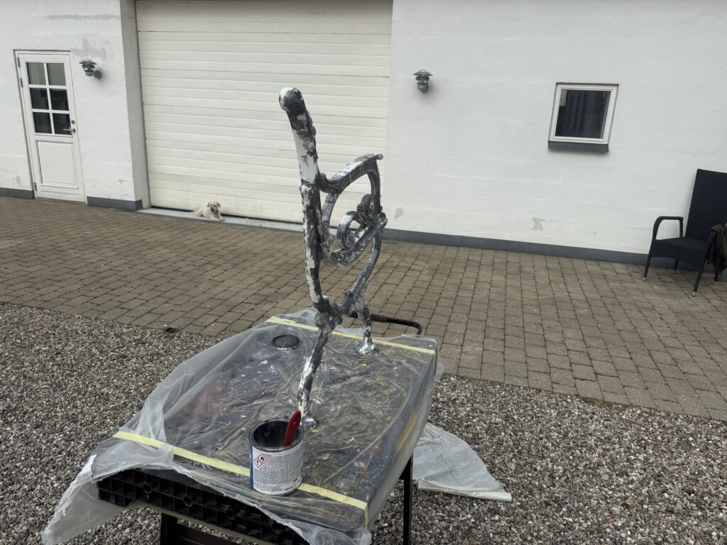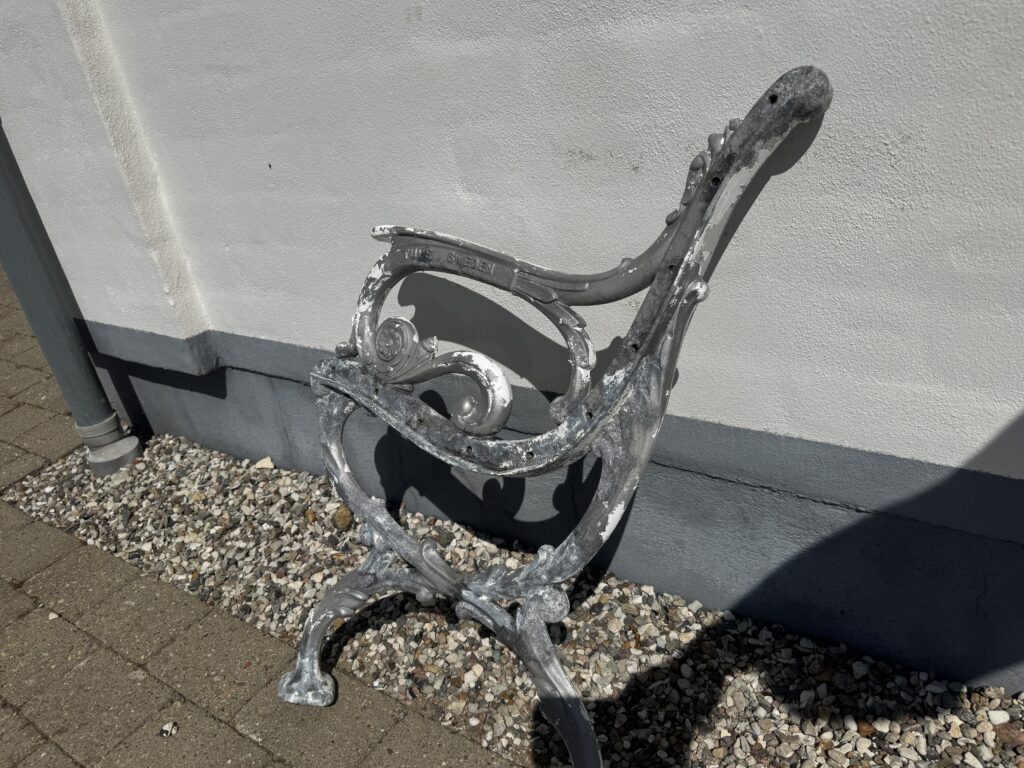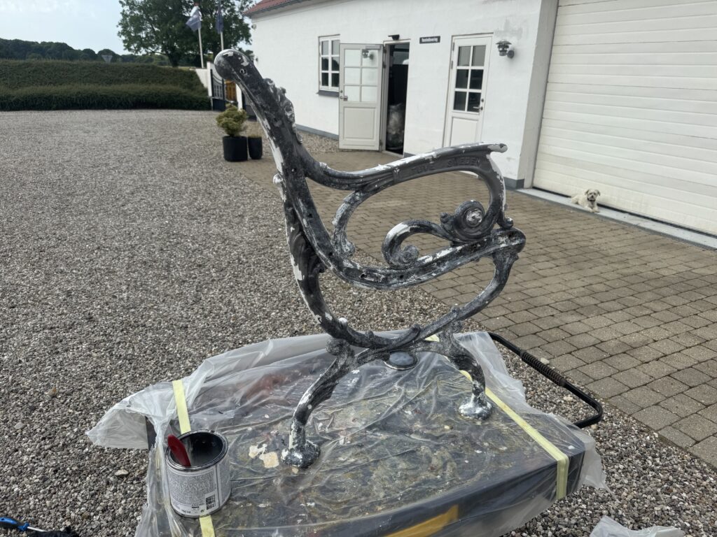 Denne havebænk er blevet afrenset på skånsom vis, så den oprindelige overflade og materialet er bevaret bedst muligt. Efter afrensningen er bænken efterfølgende pulverlakeret i den farve, kunden har ønsket, hvilket giver en slidstærk og ensartet finish med lang levetid.