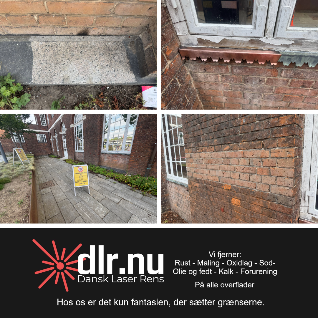 Ved denne opgave blev vi inviteret ud til en kunde, hvor både murværket og de udvendige vindueskarme trængte til en kærlig hånd. Vindueskarmen viste sig at være udført i kobber, og netop her fik vi lejlighed til at teste, hvordan laseren håndterer dette materiale. Resultatet var intet mindre end imponerende – den matte og mørke overflade blev forvandlet, og kobberets oprindelige glød trådte tydeligt frem igen. Vi må ærligt indrømme, at resultatet væltede os bagover!