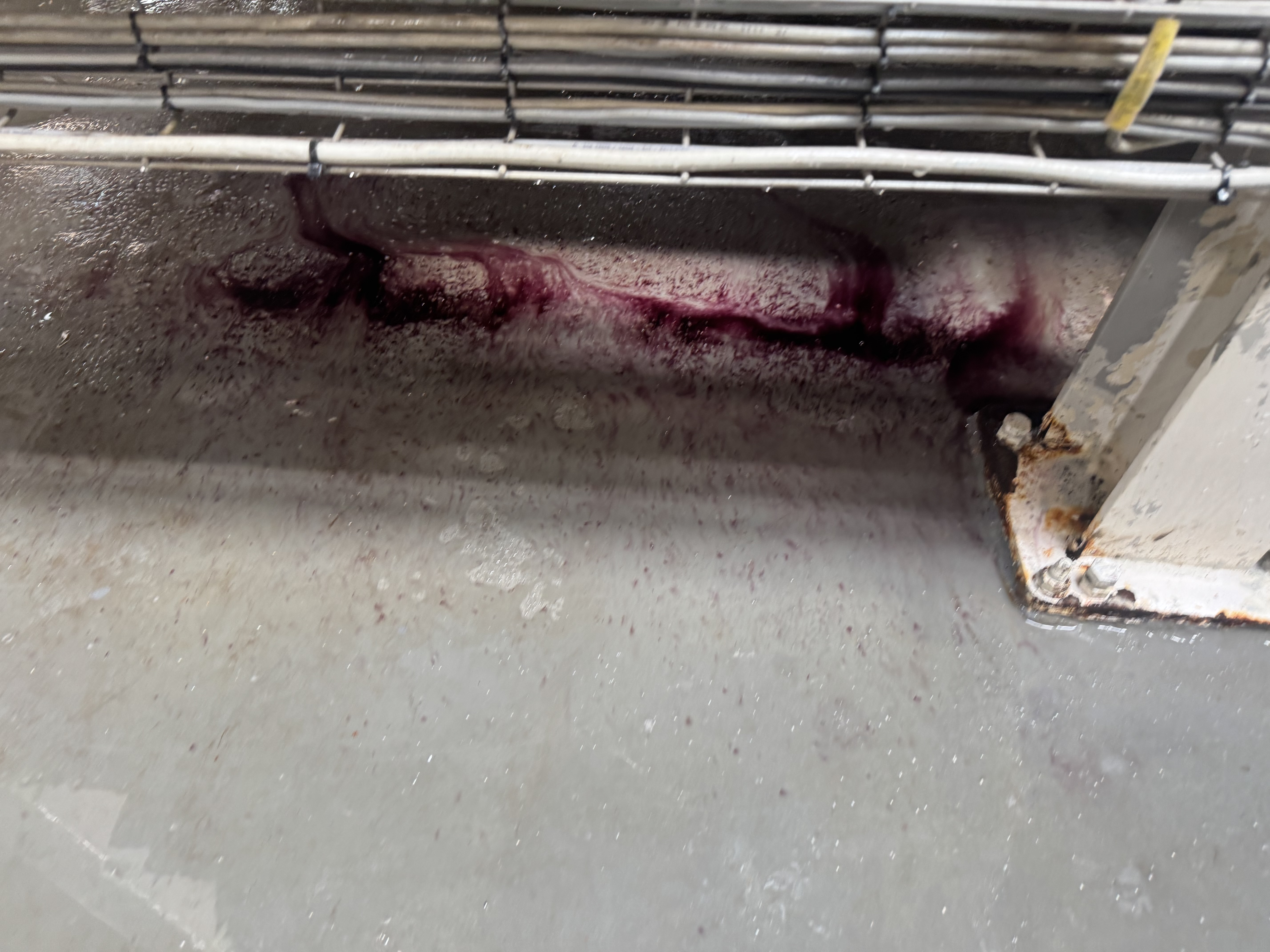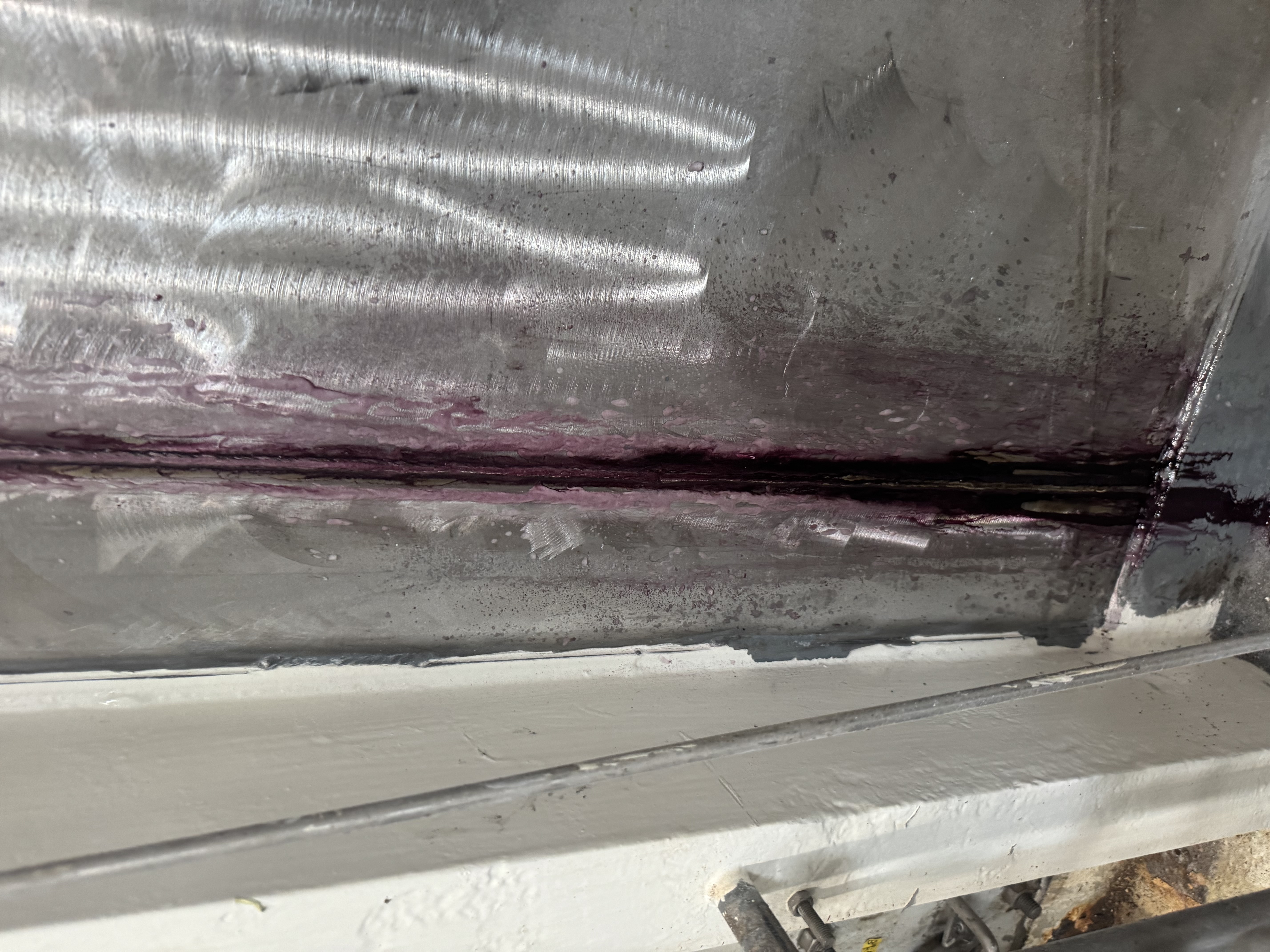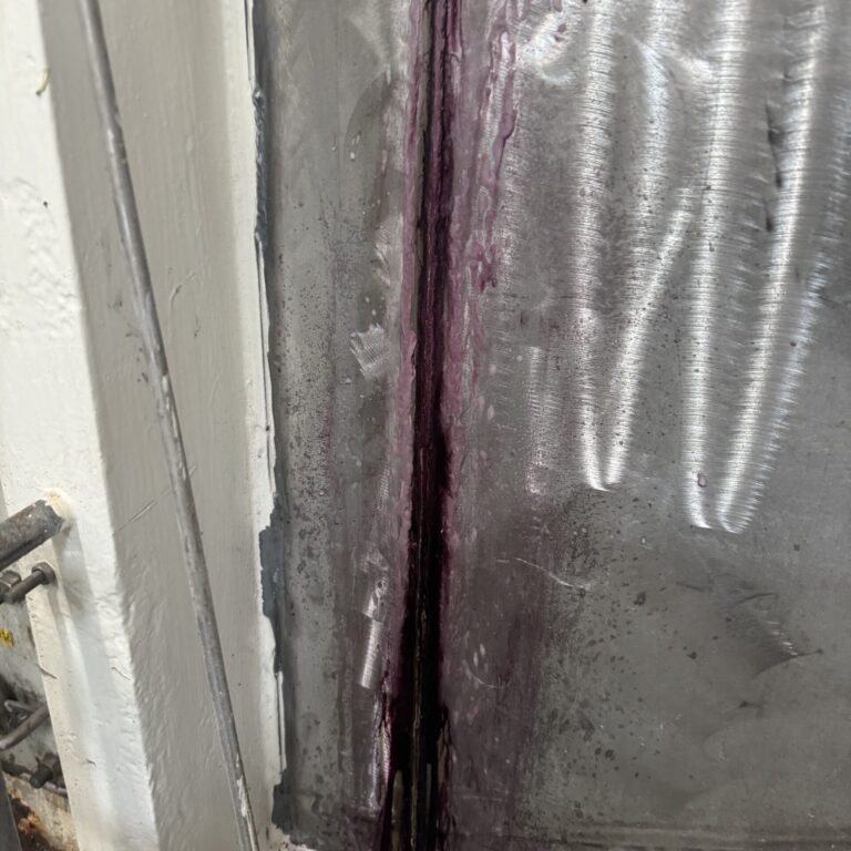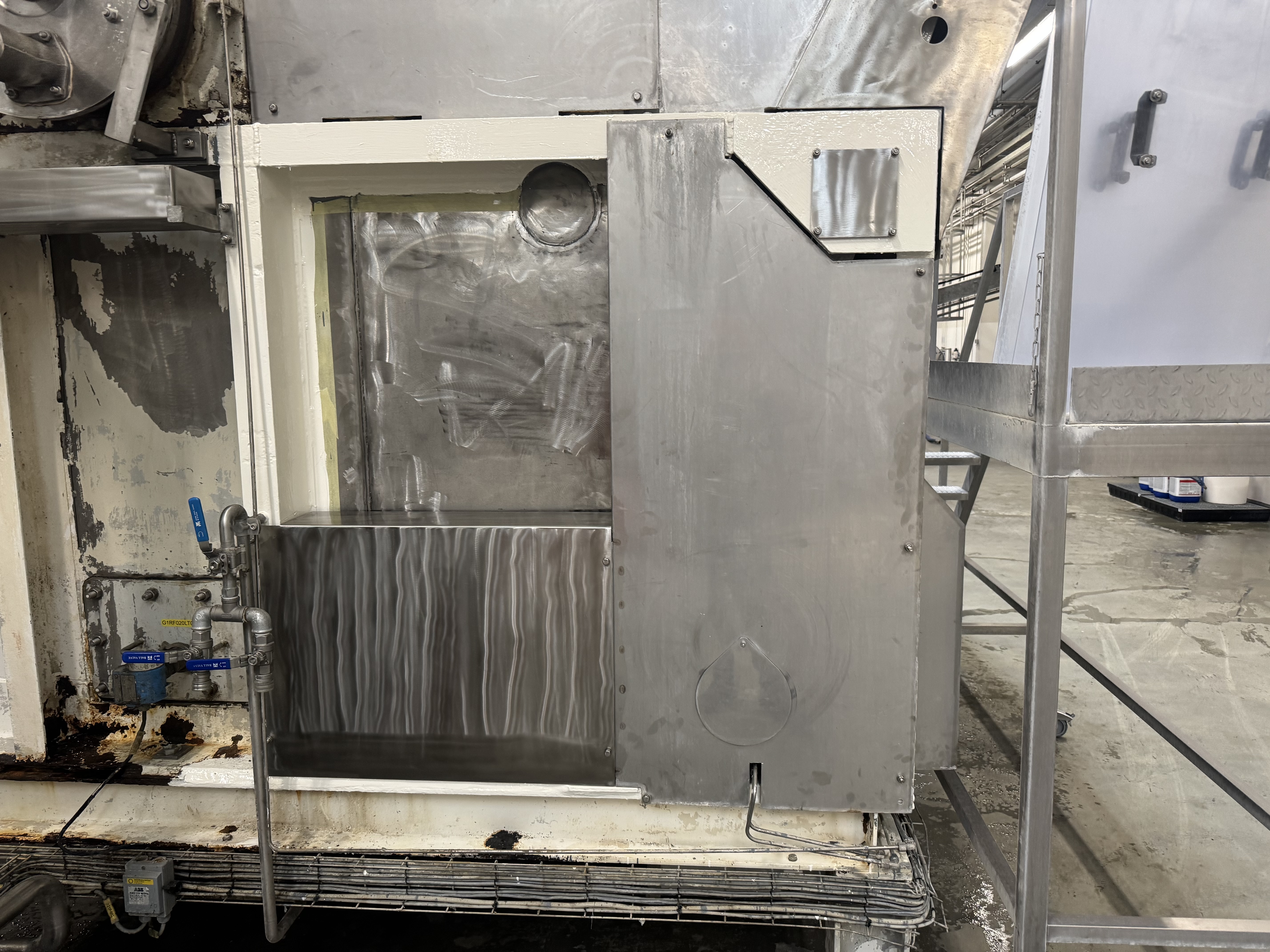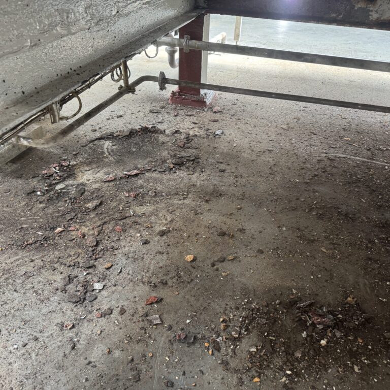 Efter hærdning har vi påført to lag fødevaregodkendt polyurethanlak. Denne lak er valgt pga. dens høje kemikalie- og slidresistens, og den opfylder kravene i EU-forordning 1935/2004 om materialer i kontakt med fødevarer. Det sikrer, at anlægget igen kan anvendes i fødevareindustrien uden risiko for kontaminering.