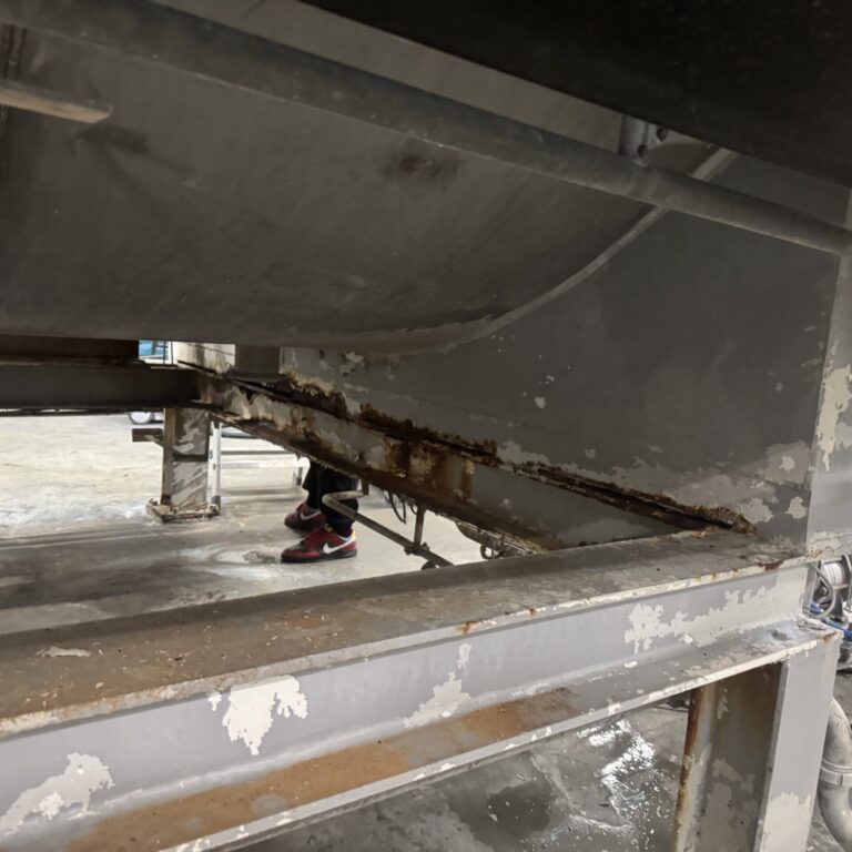 Efter en grundig gennemgang stod det hurtigt klart, at de fleste ydre dele på anlægget var hårdt angrebet af slid og rust. For at sikre en varig løsning måtte vi derfor skille anlægget helt ad og afmontere de sektioner, som kunne renoveres – og samtidig udskifte de mest tærede elementer, der ikke længere kunne genbruges.
