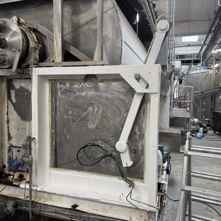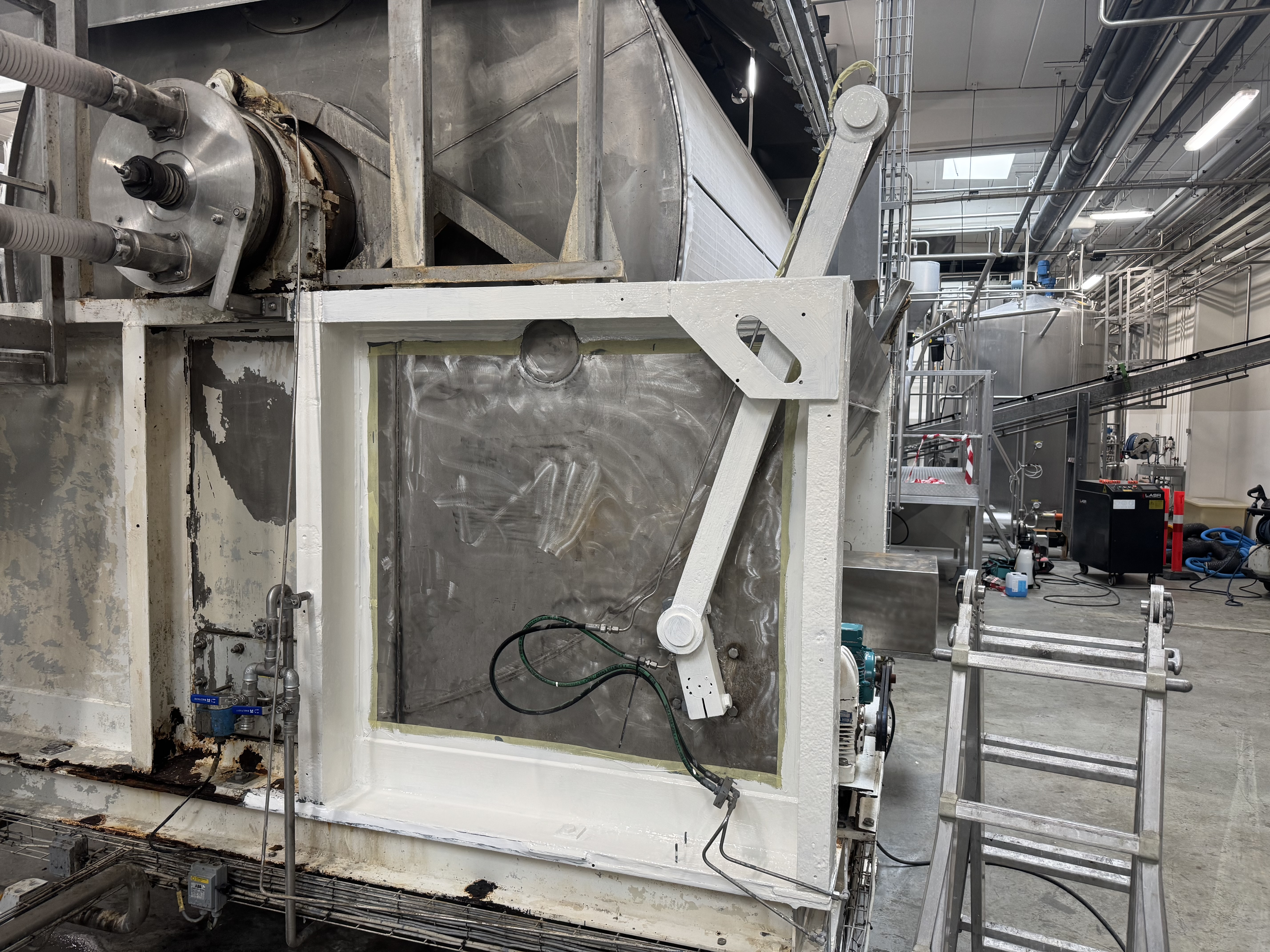 Resultatet er et trommelfilter, der både fremstår teknisk og visuelt som nyt – og som samtidig er klargjort til mange års drift i fødevareindustrien uden risiko for kontaminering.