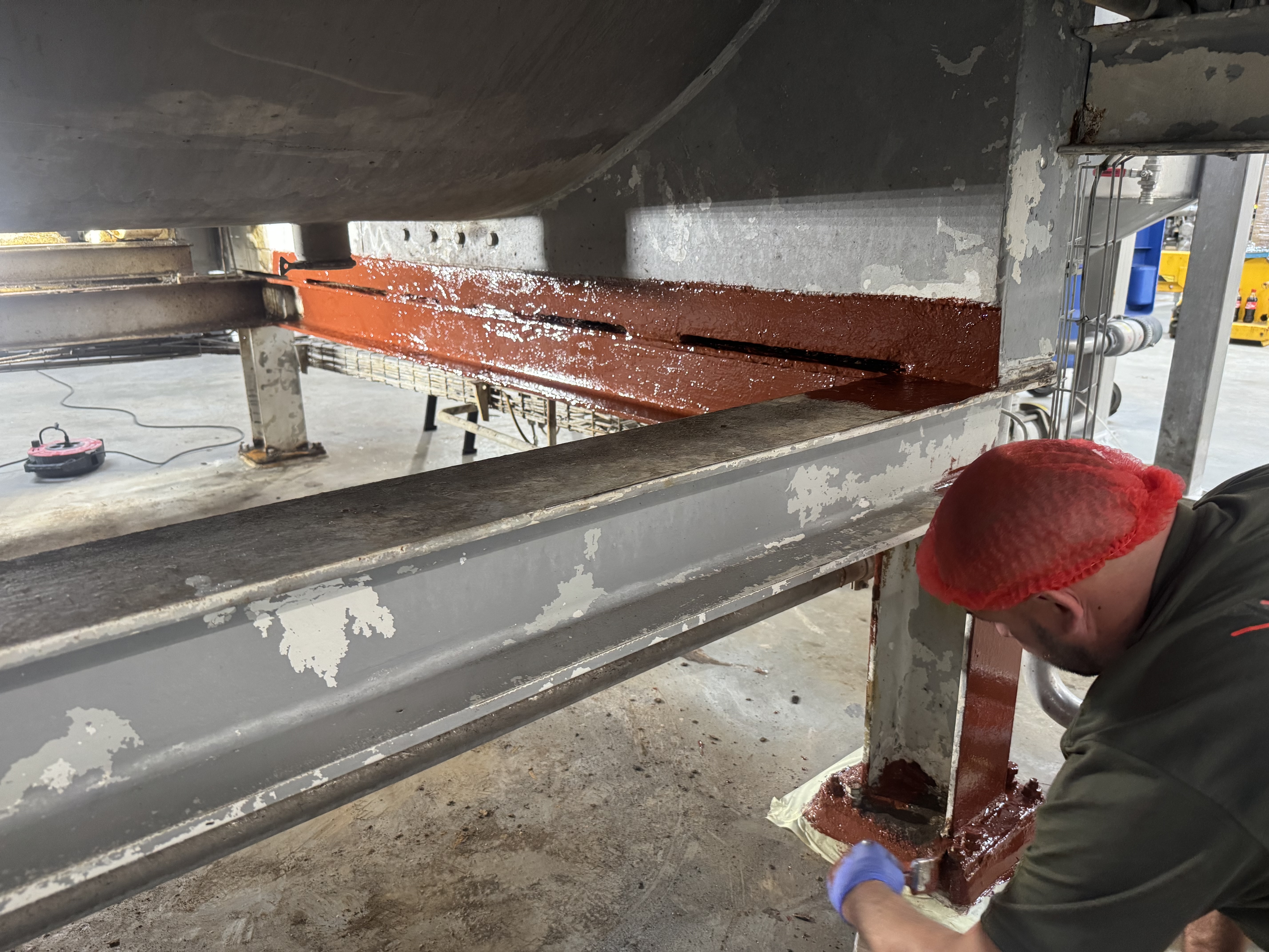 Grunder: Alle ståloverflader fik derefter en 2-komponent epoxybaseret grunder, valgt for sin høje penetreringsevne og evne til at binde sig i mikroporerne i metallet.