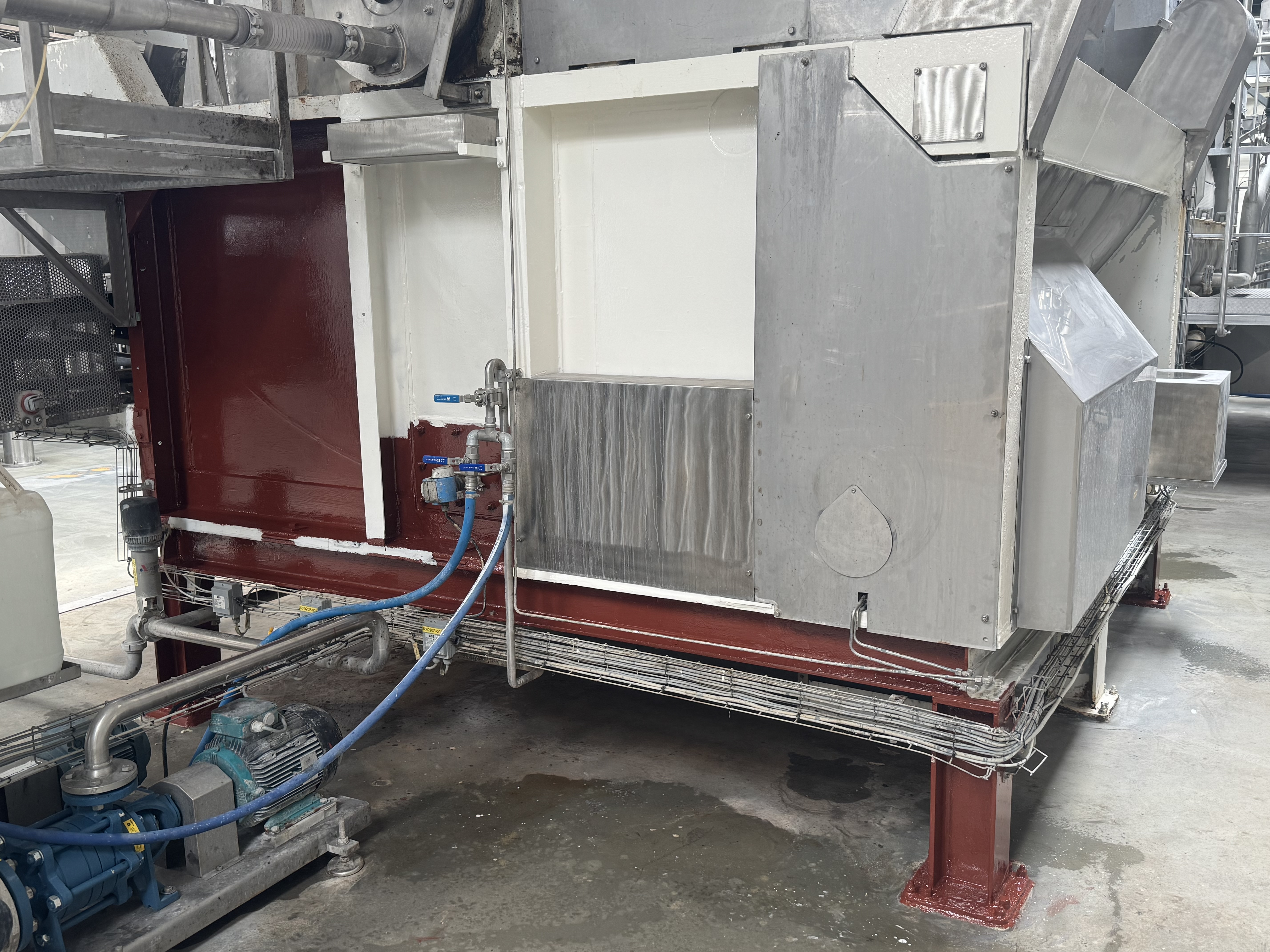 Vi er godt i gang med en omfattende renovering af et industrielt trommelfilteranlæg, og den første fjerdedel er nu gennemgået og delvist færdigbehandlet.
