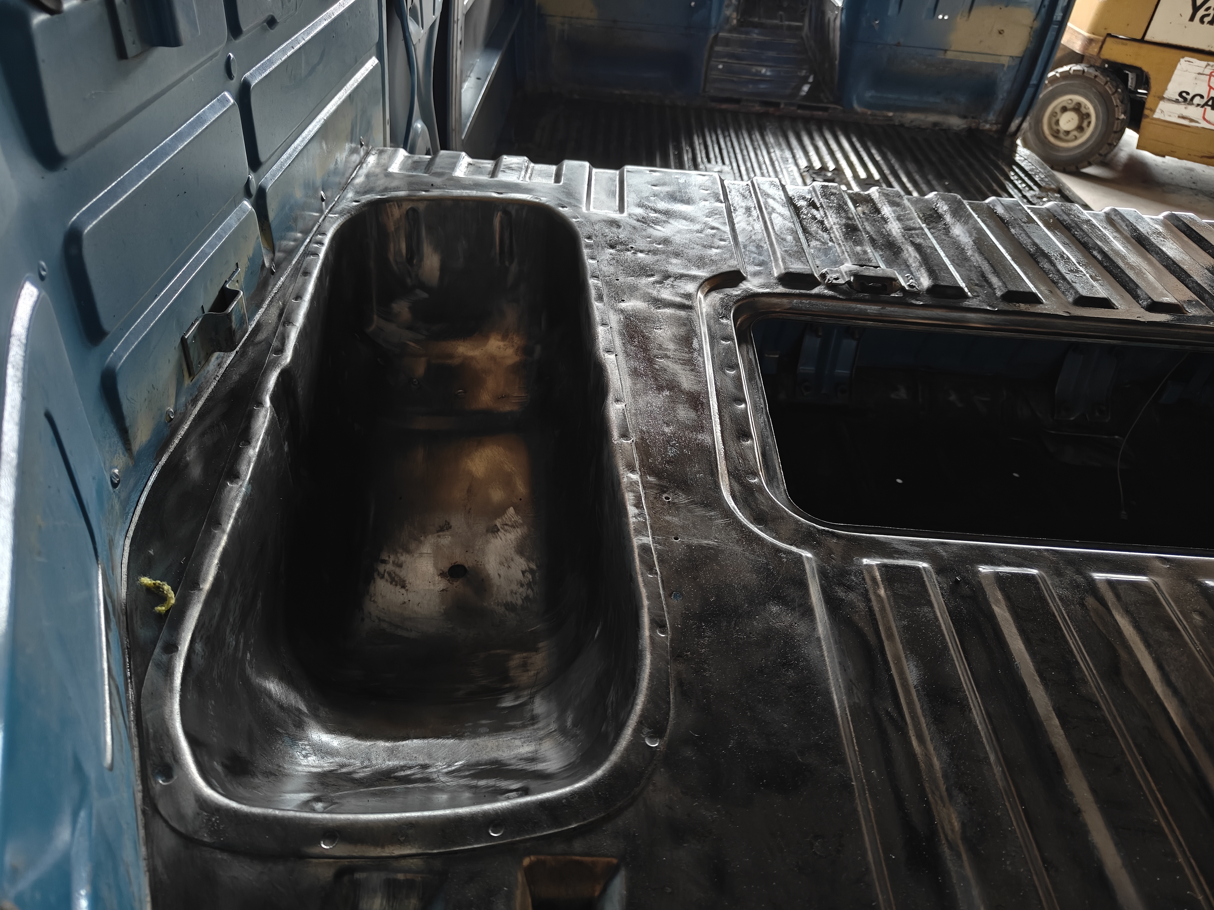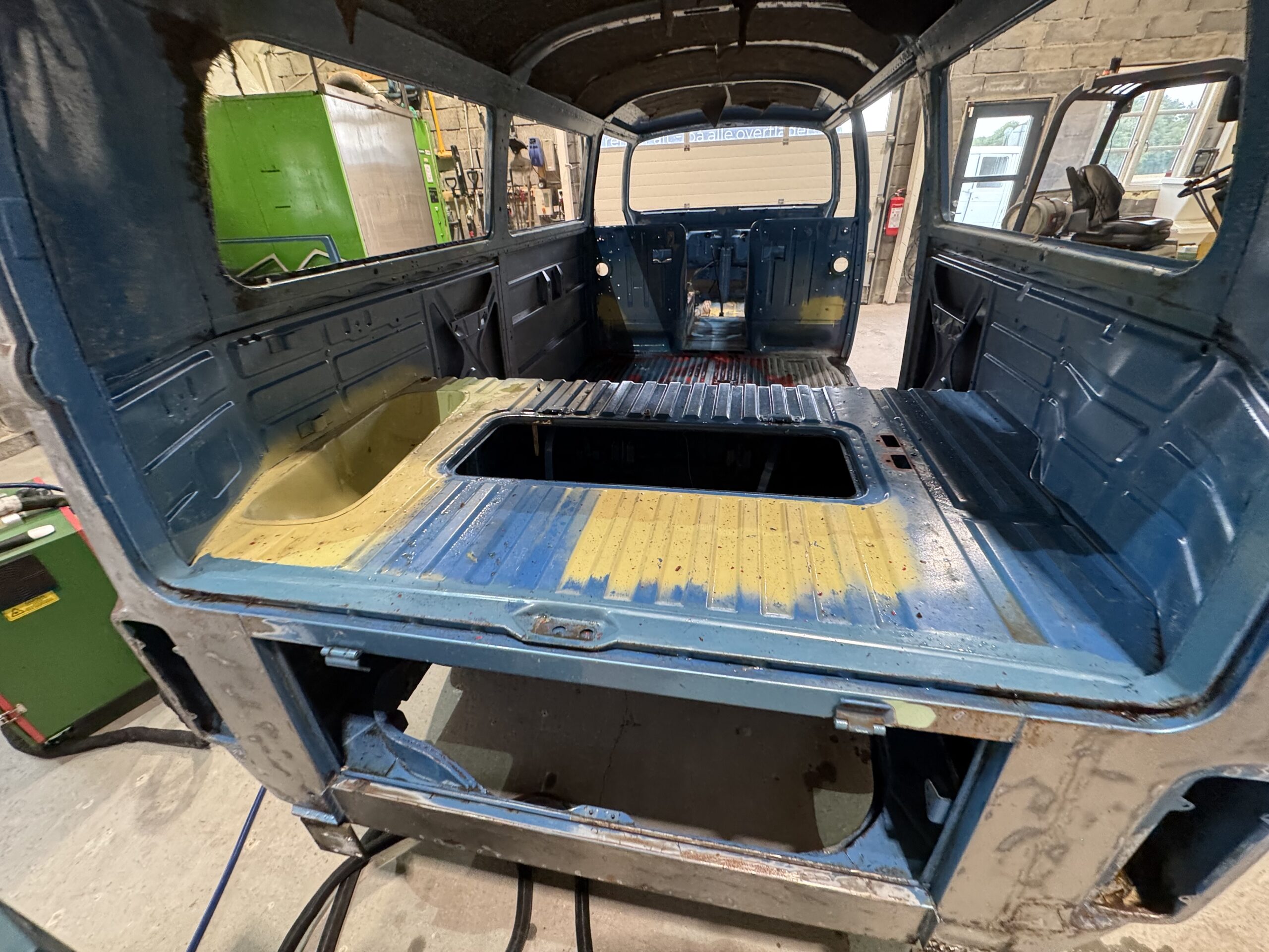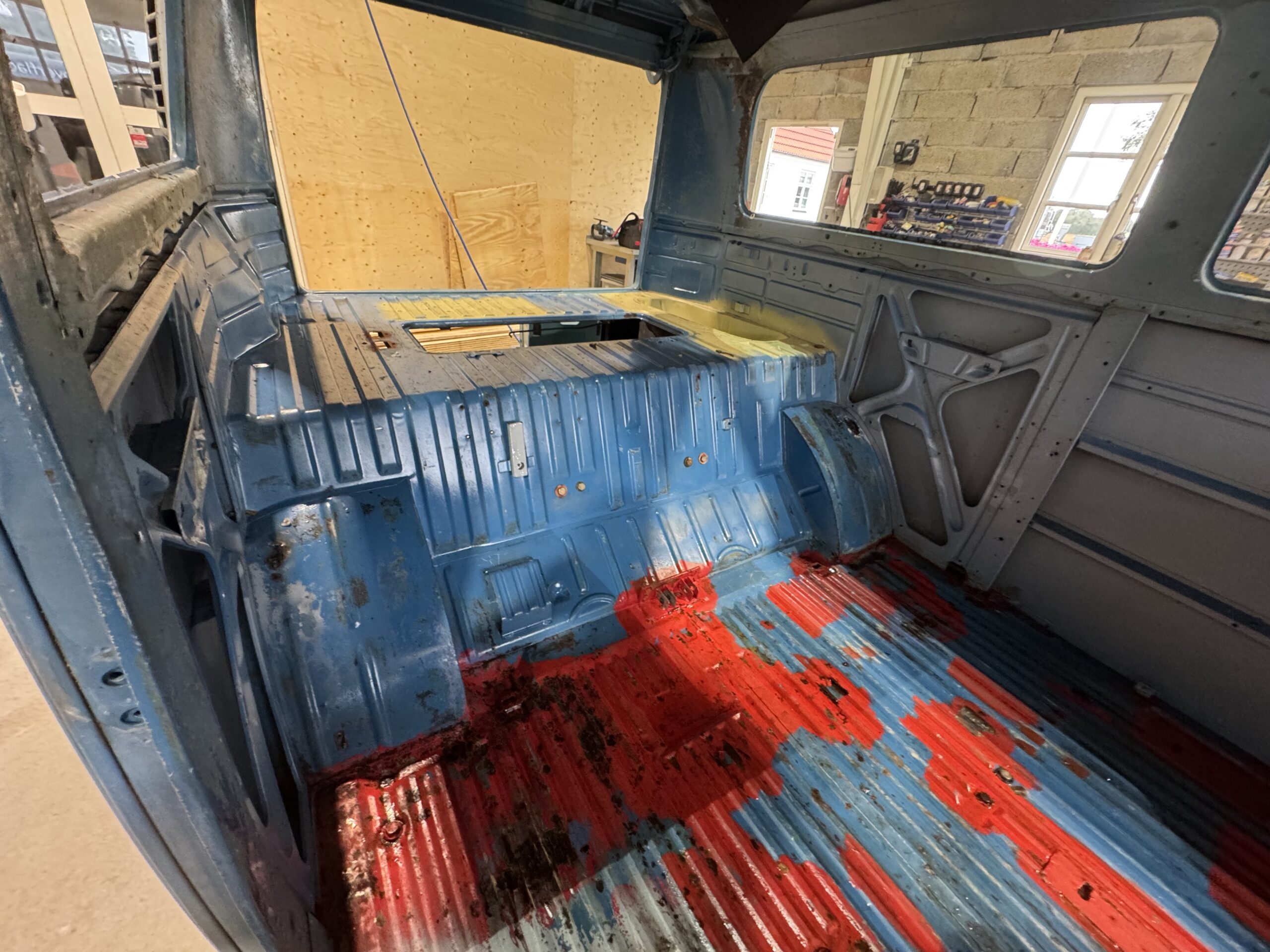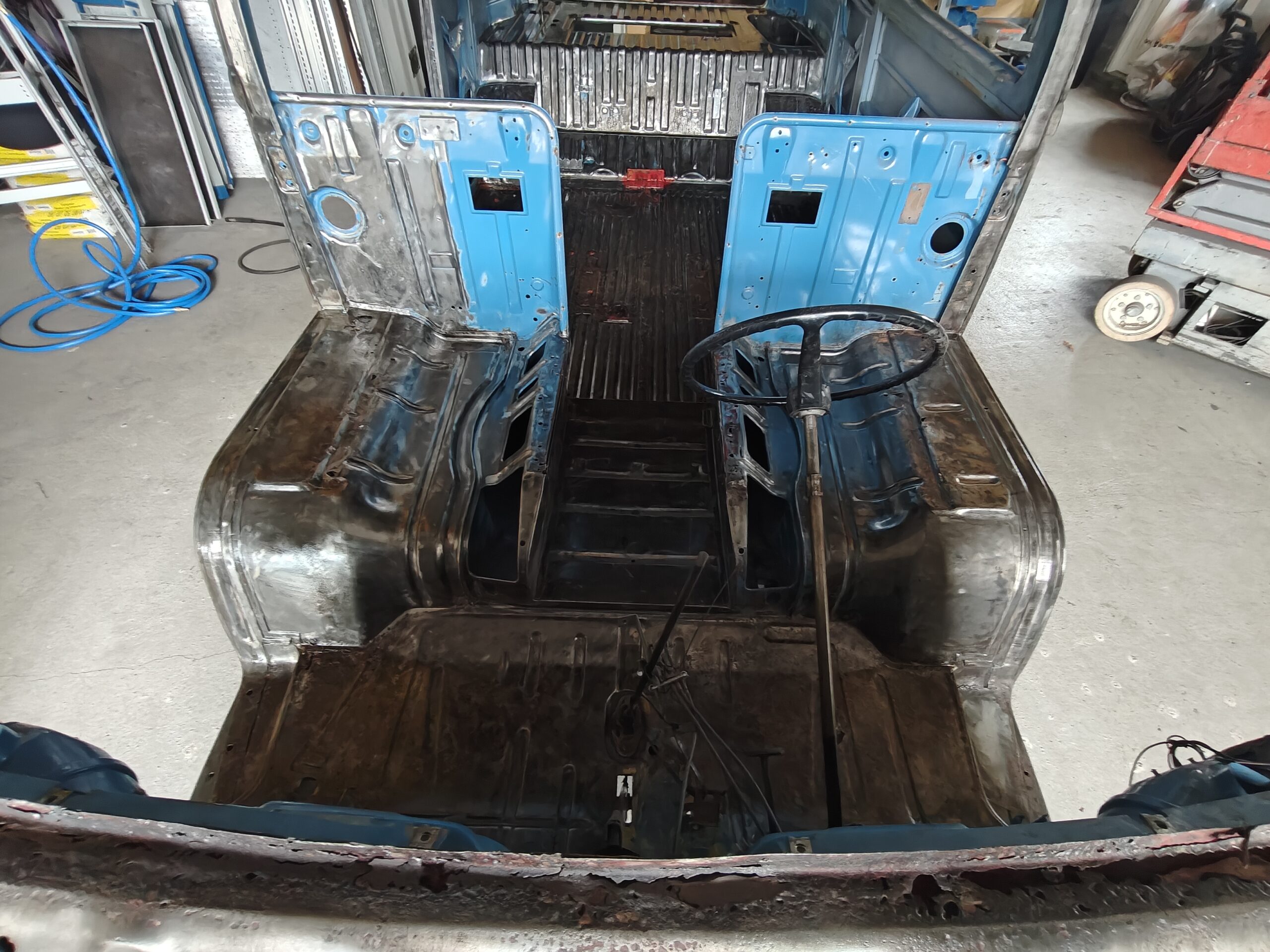 Resultatet er en VW T2, der igen står med et solidt fundament – fri for flyverust og med et motorrum, som nu er klar til renovering.