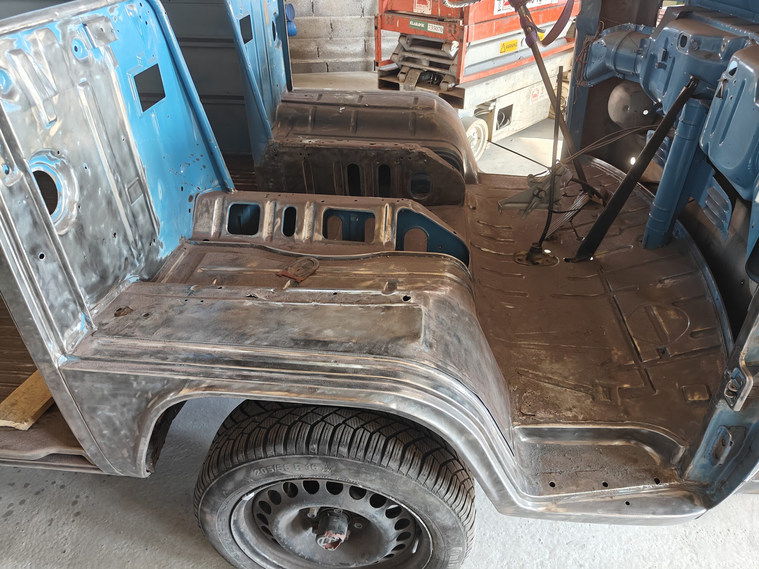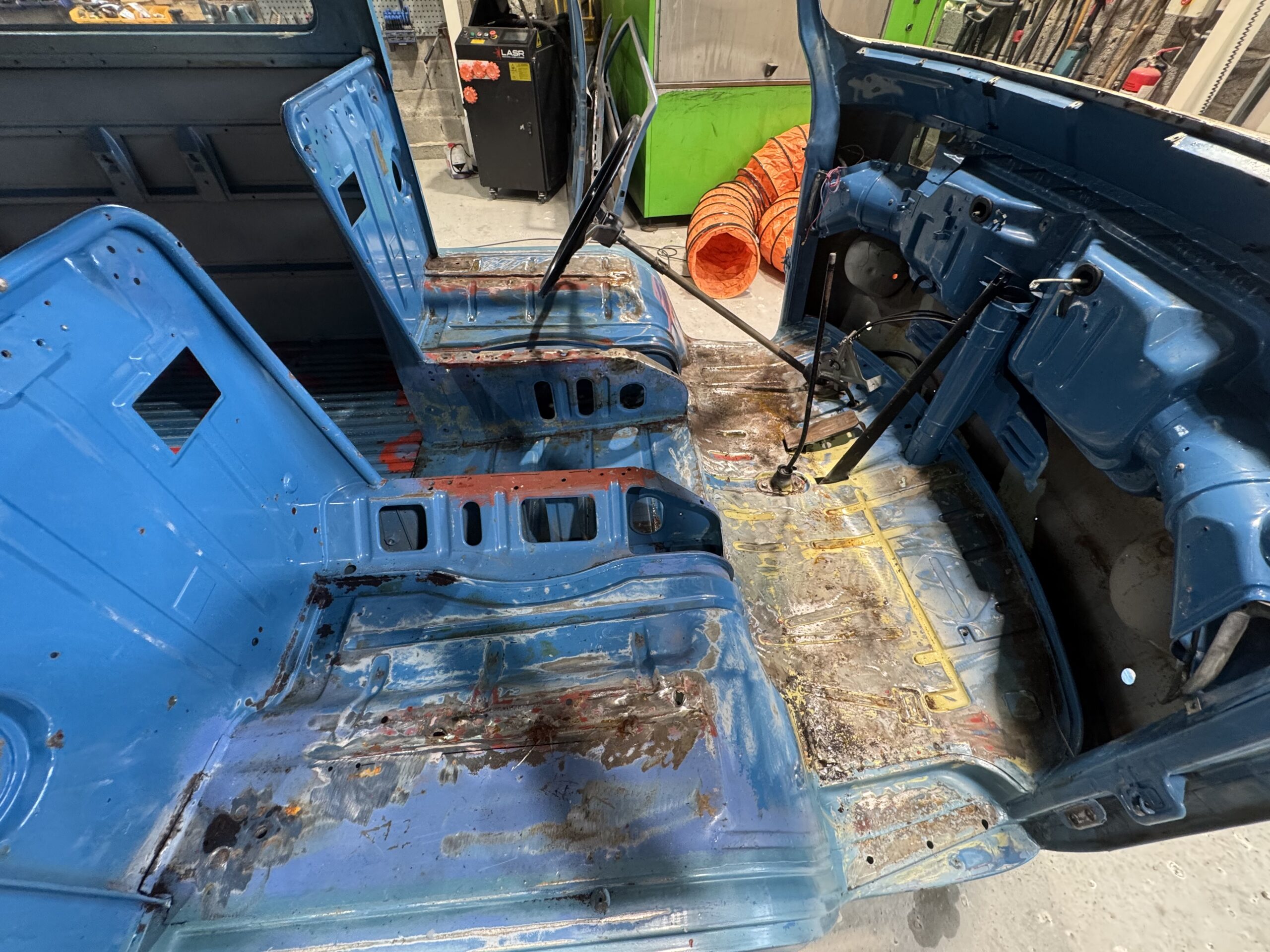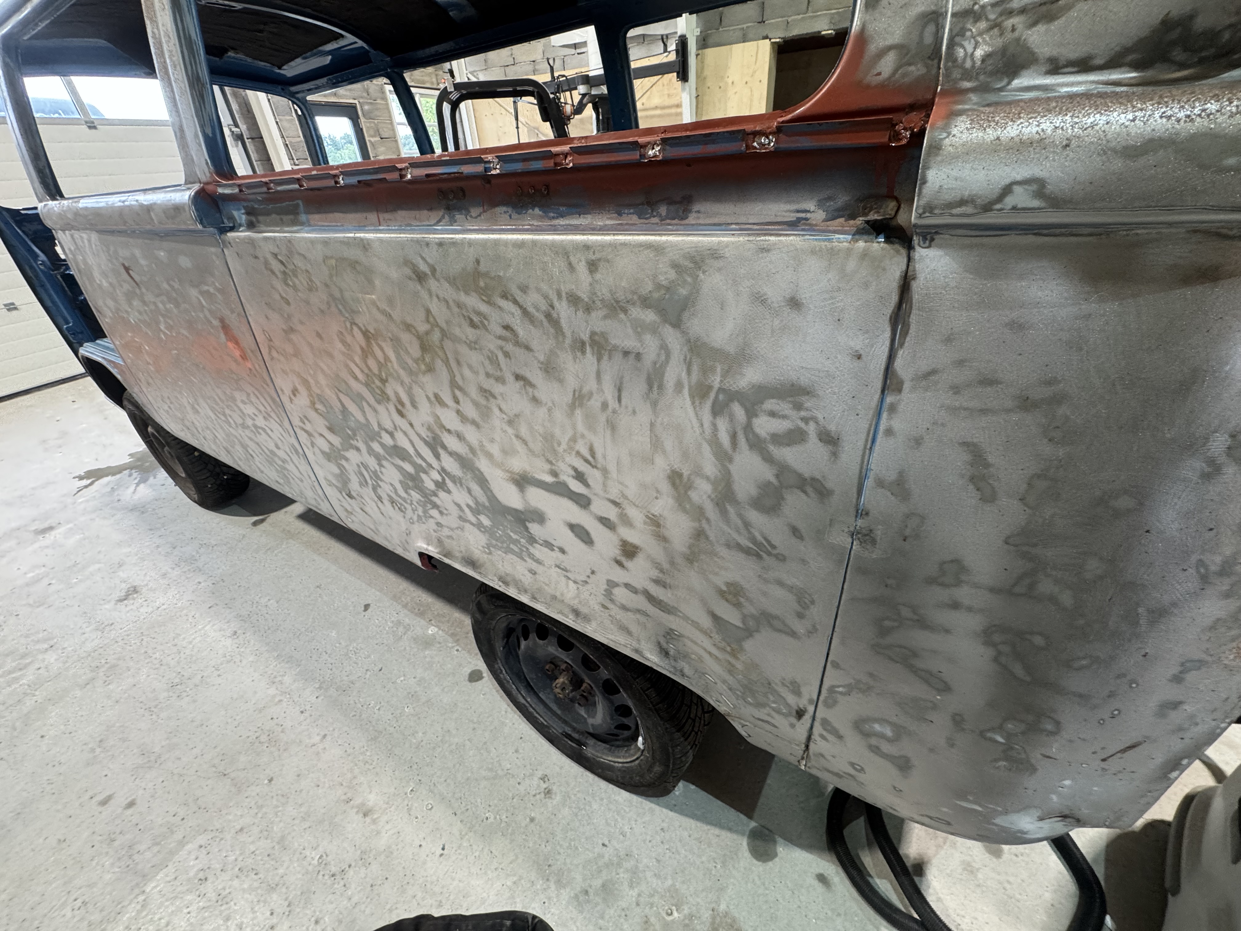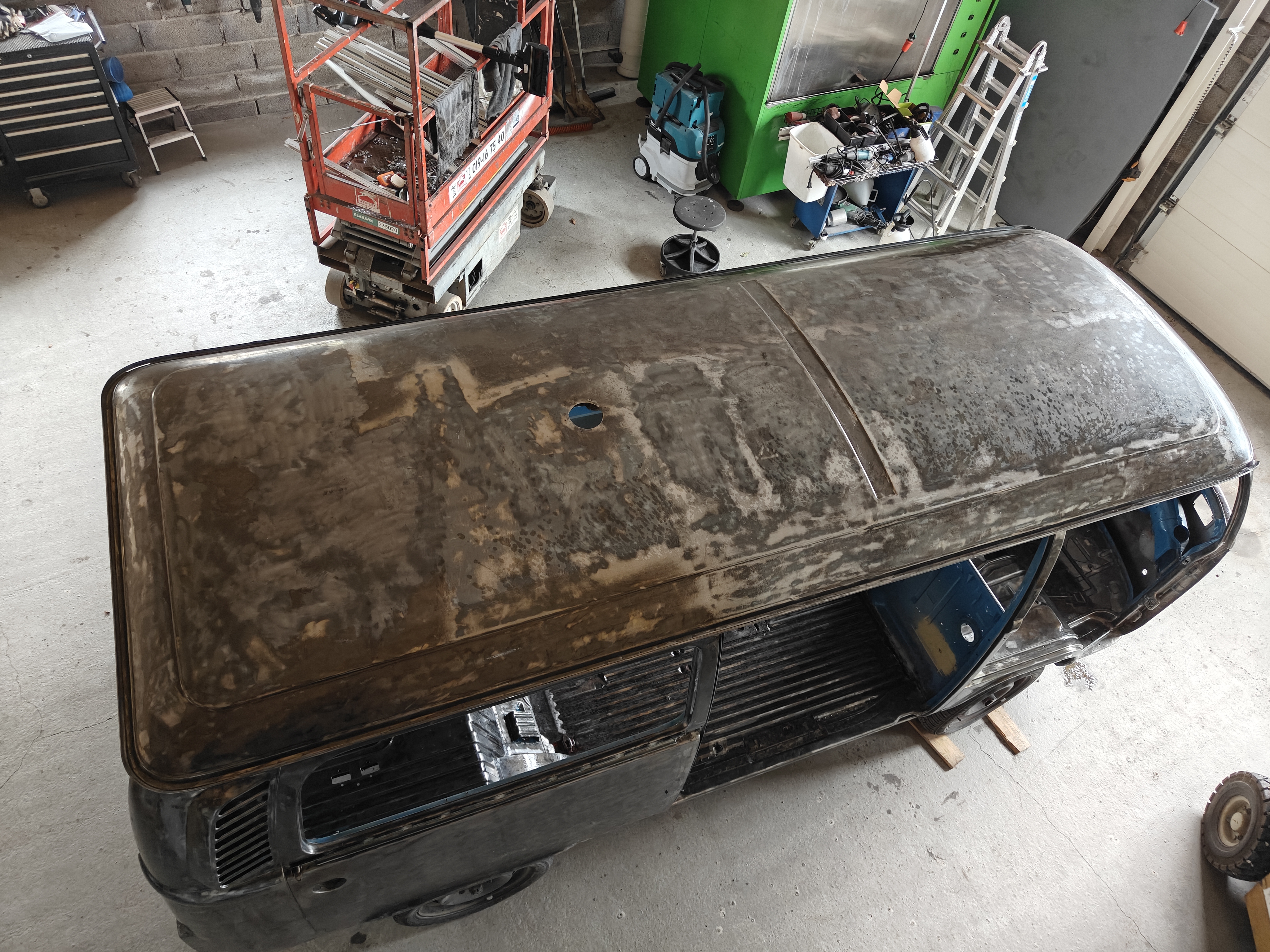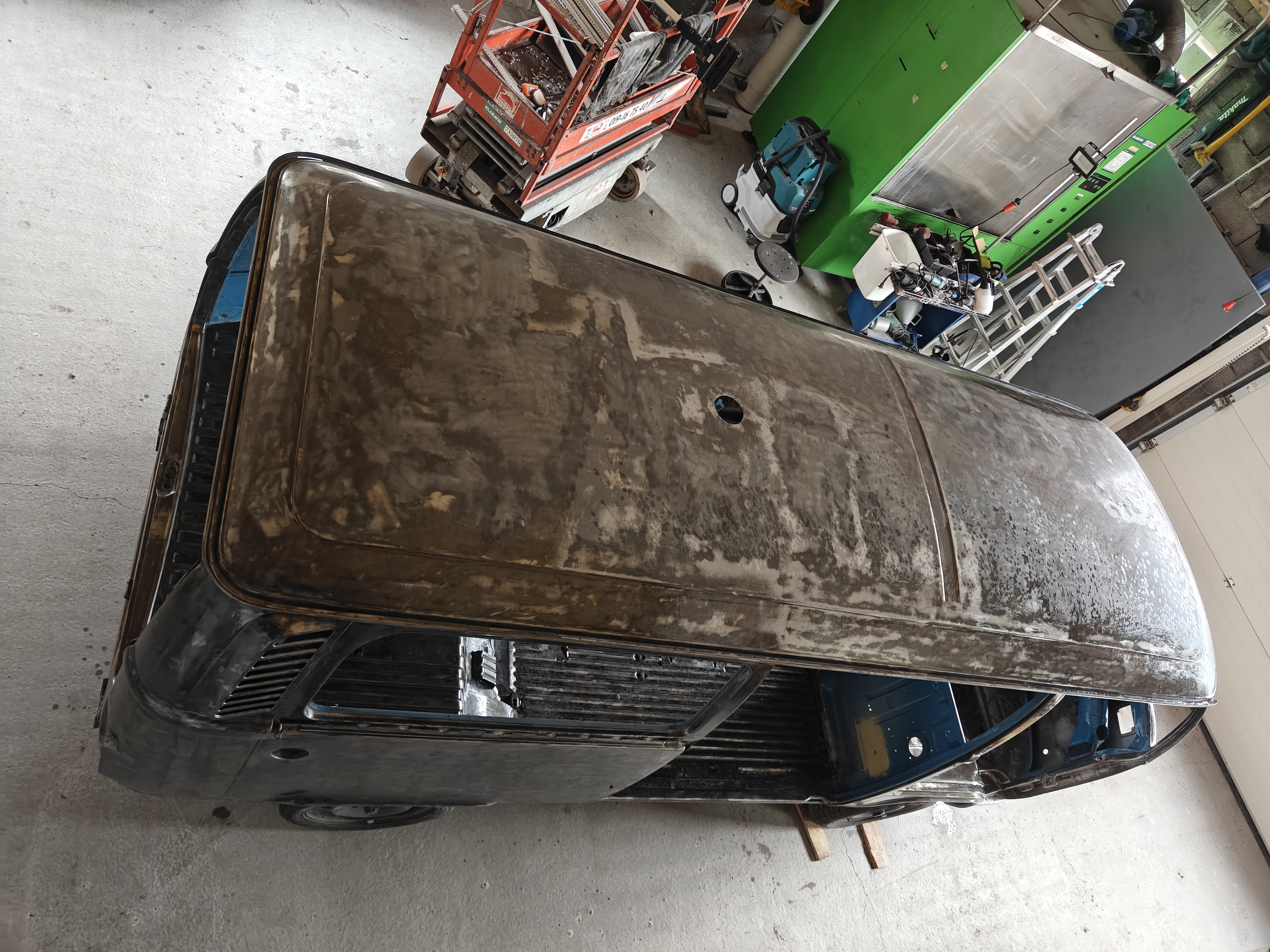 Opgaven bestod i at fjerne både rust, lak og maling fra bilens dele – især på de steder, hvor ejeren selv havde haft svært ved at komme helt i bund med slibningen. Det gjaldt blandt andet dørfalser, vinduesfalser, motorrum og andre trange kroge, hvor traditionelt værktøj hurtigt kommer til kort.